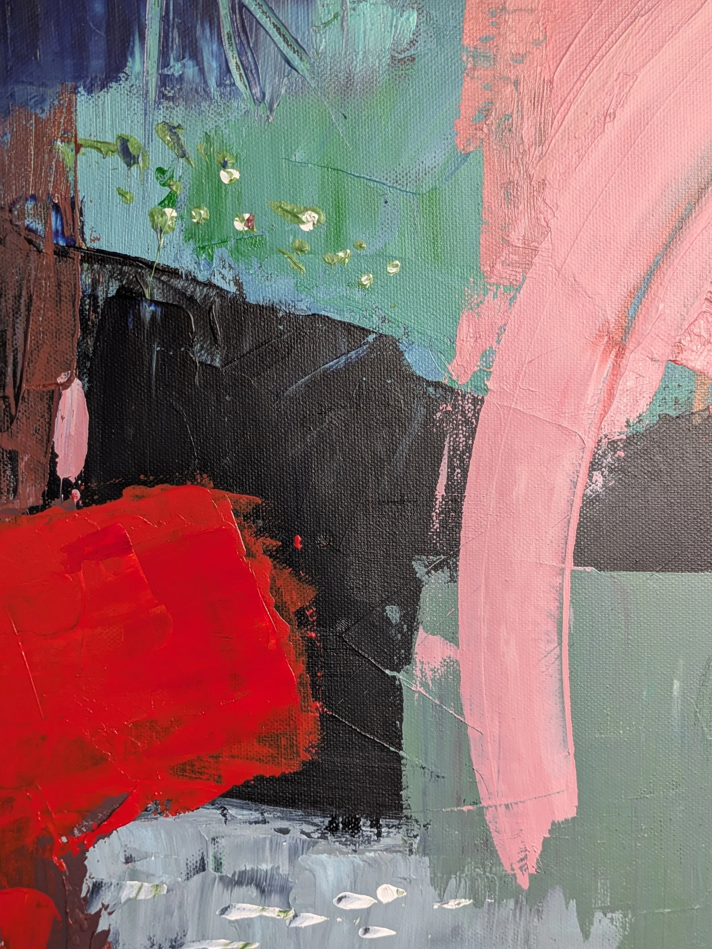 Strange Weather aka Flo, works predominantly as a freelance graddddphic designer, but has recently taken up painting again (having done so in her student days) - producing large scale colourful abstract artprocess as a way of exploring ideas.